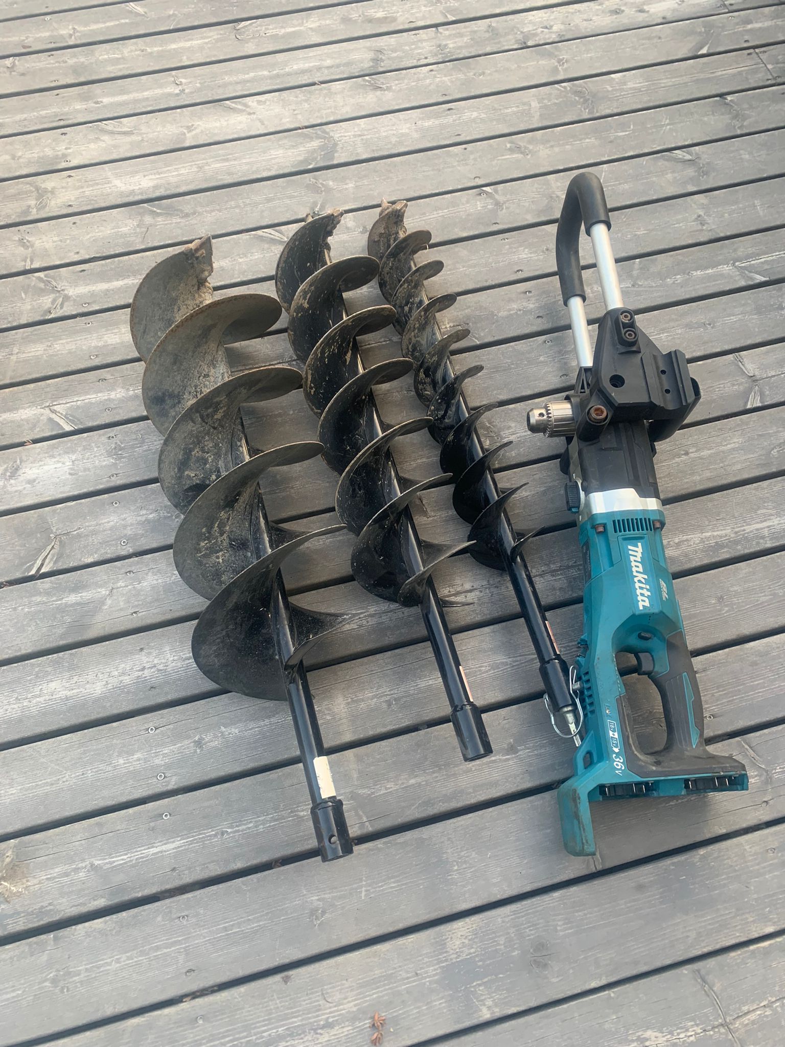 38Volt jordborrmaskin med borrar mellan 70cm-250cm diameter kommer med 6st 6Ah ackor.